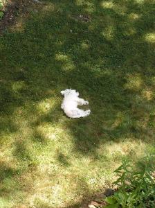 "white puddle of fur melted into the grass" -- aunt Kristy